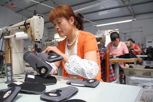 桓台荆家镇前高村办起鞋帮加工厂,帮助妇女实现就业