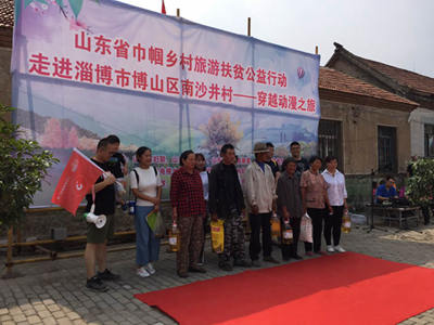 9月16日,山东省巾帼乡村旅游扶贫公益行动走进博山区南沙井村。 活动由省妇联、省扶贫办、省旅游发展委、山东广播电视台主办,省体育休闲广播电视台、淄博市妇联、博山区妇联、石马镇政府承办。省体育休闲广播电视台领导和济南市的爱心家庭、爱心企业以及新闻媒体来到了美丽的南沙井村,为村里的贫困户送来关爱。