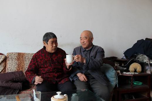 他的妻子王仪芝患小脑萎缩已将近十年的时间了,由于脑萎缩,完全就是一个“老小孩”, 他每天像照顾孩子一样照顾着她,忍受她的小脾气,哄她吃药,陪她听戏、听小说、看电视,他和妻子一起“抗战”,不离不弃,毫无怨言。