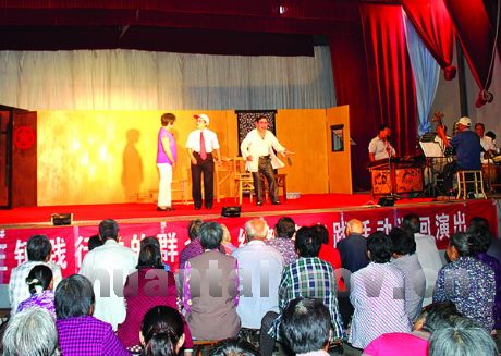 近日,田庄镇田庄村消夏文化广场展演拉开帷幕。演出节目包括歌曲、吕剧、小品、快板、京剧等,田庄镇夕阳红艺术团新改编的《沙家浜》、《娶婆婆》等节目,以宣传爱国主义和孝老敬亲精神为重点,形象贴切,脍炙人口,深受群众喜爱。(桓台县田庄镇妇联)