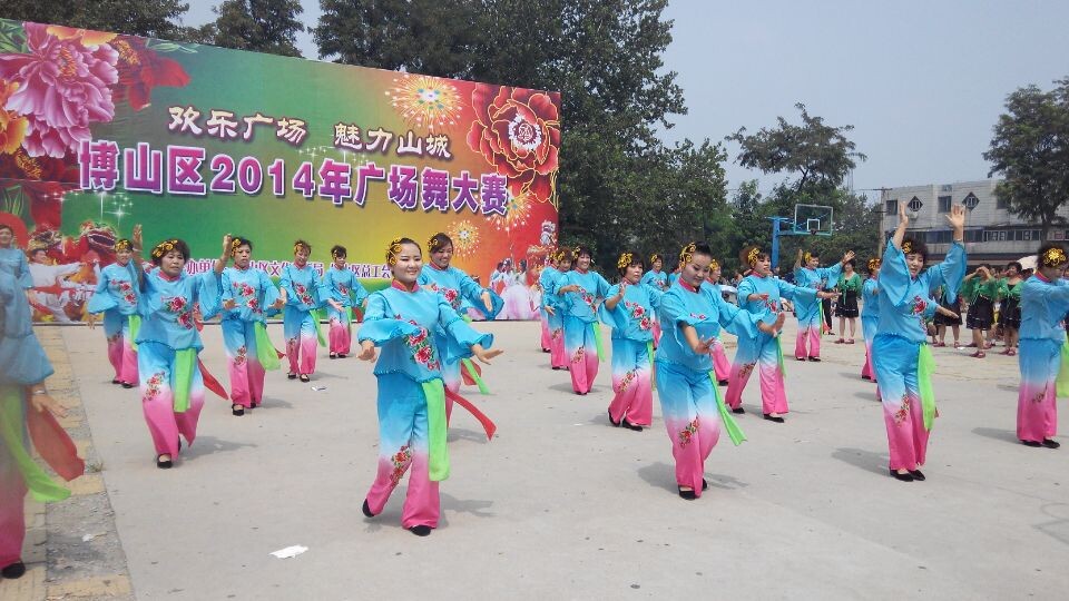 活力广场 群舞飞扬 7月29日,我镇妇联联合文化站组织30人的广场舞队伍,参演了欢乐广场、魅力山城博山区2014年广场舞大赛,通过20支代表队伍激烈角逐,我镇广场舞代表队力战群团,以卓越的成绩,取得了第一名, 把我镇妇女的精神面貌舞出了风采!