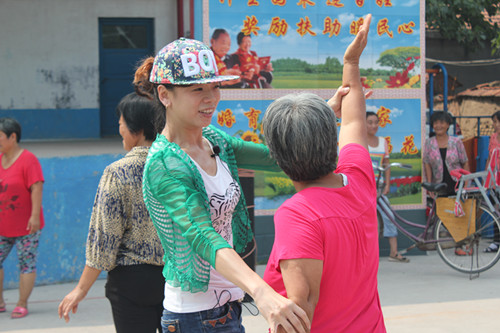 近日,桓台县田庄镇举办“新农村新生活”广场舞培训班,80多名农村妇女参加培训。图为舞蹈老师在为妇女指导舞蹈动作。(田庄镇妇联)
