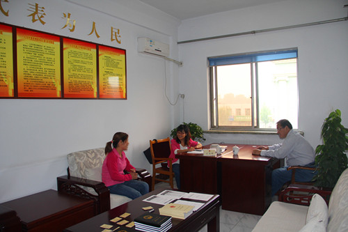图为张店区女人大代表王玉玲同志听取群众意见。