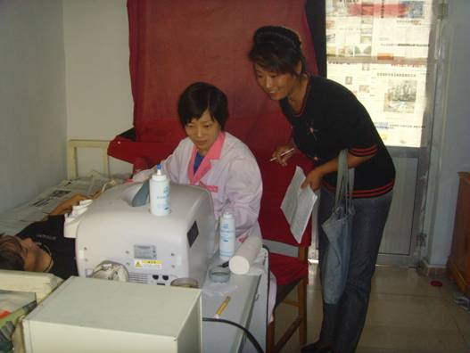 通过此次活动,使妇女及早发现身体的健康问题,做到有病“早发现、早治疗”,最大限度的减轻了妇女的痛苦,提高了农村妇女健康水平,受到了广大妇女们的好评。(图为工作人员正在为妇女做B超)