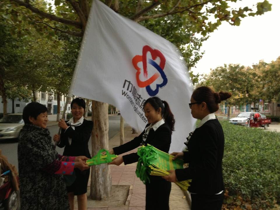 “学雷锋日”和三八国际劳动妇女节来临之际,桓台县妇联积极组织巾帼志愿者开展“开展低碳环保 倡导绿色文明”活动。图为城区街道妇联组织巾帼志愿者们到西苑小区捡拾垃圾、发放购物环保袋,在小区内倡导环境维护和节能低碳理念,受到了居民的欢迎。