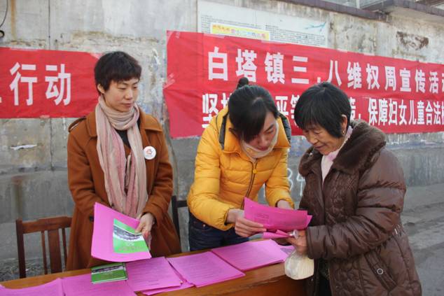 3月4日上午,在三八妇女节来临之际,博山区白塔镇妇联组织了部分巾帼志愿者来到饮马社区大集上,拉开了开展“巾帼维权,送法到家”为主题的宣传活动序幕,此次活动由镇妇联牵头,镇工会、镇团委联合举办。在活动现场,“巾帼维权,送法到家”、“男女平等,和谐发展,共创美好明天”等醒目的标语立刻吸引了广大群众的目光,大家纷纷来到宣传点前,争相抢阅各种宣传材料,并积极咨询妇女维权知识。同时,巾帼志愿者们还为妇女群众发放了《法律知识读本》、《反邪教明白纸》、《职工劳动法规》等知识读本,并解答群众的咨询,把志愿服务送到妇女群众的心坎上。此次活动受到了广大农村姐妹们的一致好评,称它是一份特别的节日礼物。