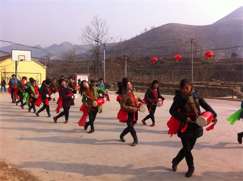 为了让山村能真正热闹起来,朱家户村早早就在文化广场上挂上大红灯笼,组织腰鼓队开始了节目排练,原先的秧歌队、舞狮队等也在积极的筹备节目。锣鼓齐奏、彩绸飘动,乡亲亲们正热情地为即将到来的春节表演认真做准备。