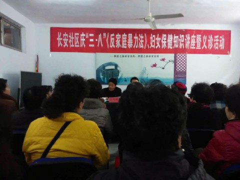 庭暴力法》的认识水平和依法维权能力,3月6日,周村区大街街道妇联聘请律师和一线妇幼专家,为社区妇女群众举办了一场庆三八《反家庭暴力法》、妇女保健知识讲座暨义诊活动,为社区妇女送知识,送健康,受到了社区居民的欢迎。