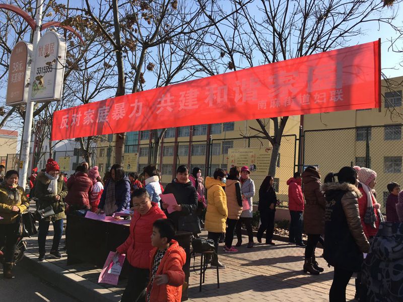 “打不是亲,骂不是爱”,面对家暴,请勇敢说“不”!11月25日,在国际反家庭暴力日来临之际,南麻街道妇联、城西居委会等部门联合,向广大市民进行反家暴宣传,倡议大家行动起来,反对家庭暴力,关心爱护家人,创建幸福家庭。现场共发放反家暴倡议书600余份,反家暴宣传册200余份。
