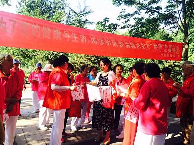为提高“两癌”防治和免费筛查的知晓率,推进35-64岁妇女宫颈癌、乳腺癌免费筛查项目的顺利实施,6月9日,丝绸路街道大世界社区组织辖区志愿者和社区工作人员,在周村区人民广场开展了城乡妇女“两癌”免费筛查宣传活动,为在人民广场参加活动和过路的行人发放“粉蓝丝带呵护女性健康”乳腺癌、癌颈癌防治知识宣传彩页。