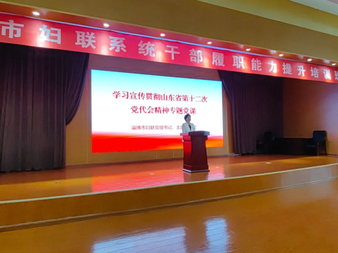 开班仪式上,培训第一课由市妇联党组书记、主席成文主讲,首先为全体人员做了学习宣传贯彻山东省第十二次党代会精神专题党课,之后传达学习全国人大常委会副委员长、全国妇联主席沈跃跃来鲁调研精神,并围绕妇联组织的历史地位和职责使命对如何做好妇联工作进行了深入浅出的讲解。随后各党组成员围绕分管工作为参训人员做了妇联业务知识辅导。