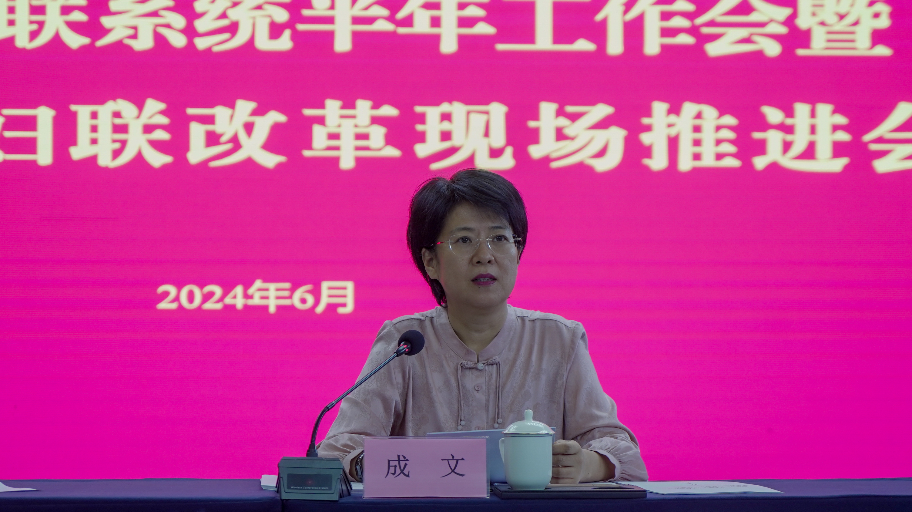 下午召开会议,市妇联党组书记、主席成文主持会议并讲话,各区县妇联、功能区妇工委相关负责人汇报交流工作,市妇联党组成员部署下半年工作任务。