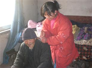 贾家庄害有眼病的刘奶奶,眼睛红肿,很多村民见了都有些畏惧,但孩子们就像自己的亲奶奶一样对她细心照料:帮她穿衣服、给她喂水、帮助做饭……刘奶奶激动地哆嗦着双手,说:“我一个孤老婆子,没了孩子,但我有了孙子,有了一群亲孙子。”