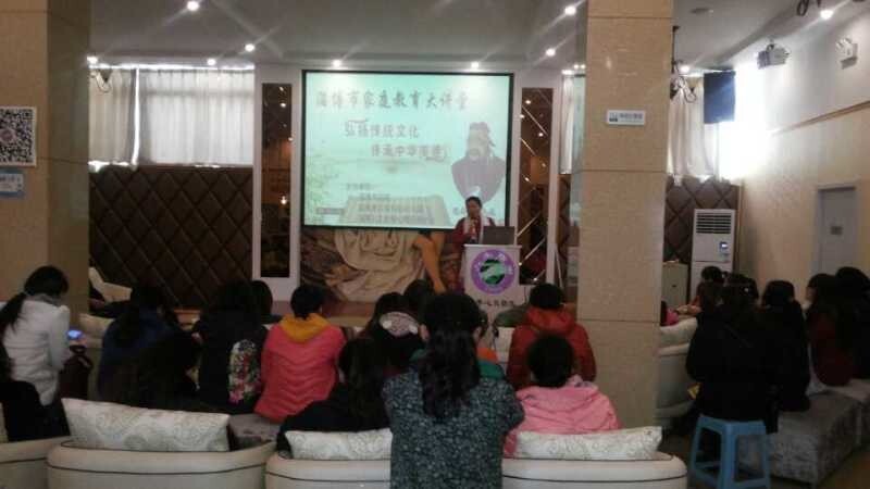 李翠玲老师结合自己人生轨迹转变等方面亲身经历,与家长们一起交流了“民族的竞争就是年轻妈妈的竞争”、“论语是最早的微博”、“如果别人也是自己就不会有伤害别人的行为”等观点,引导教育家长怎样与孩子学习传统文化,遵守伦理道德。并通过弘扬优秀的中华传统文化,帮助教育孩子们从小塑造正确的人生观、价值观,带动家庭和睦,社会和谐。期间,李翠玲老师为每名家长赠送了国学经典书并详细解读了国学经典篇目书名及书内部分内容。