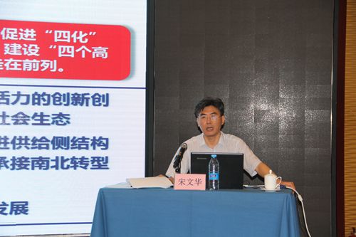 7月11日上午,淄博市助力新旧动能转换巾帼在行动专题讲座在淄博饭店举办,山东省发改委政策法规处处长宋文华应邀作了题为《落实党的十九大精神,推进新旧动能转换重大工程》的讲座,市妇联副主席伊书霞主持。