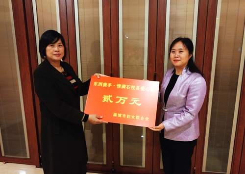 近日,重庆石柱县妇联主席唐仕芳随石柱东西协作扶贫群团考察团来我市对接东西扶贫工作。淄博市妇联主席马召芹与县妇联主席唐仕芳进行了座谈交流,介绍了淄博妇联在实施巾帼脱贫行动、妇女创业创新培训、乡村振兴巾帼行动等方面的做法,淄博市妇联向石柱县妇联捐赠了2万元爱心款,用于帮扶石柱县建档立卡贫困妇女儿童。市妇联副主席崔云芝、卢艳丽陪同唐主席参观了临淄妇女创业就业基地等。