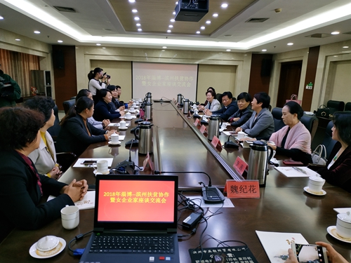 为进一步深化交流,加强合作,进一步巩固和提升淄博---滨州两市妇联扶贫协作关系,加强两地女企业家之间的合作共赢,淄博市妇联党组成员、挂职副主席卢艳丽带领桓台县妇联、女企业家一行10人赴滨州开展巾帼扶贫协作暨女企业家座谈交流活动。滨州市妇联副主席李云出席活动。
