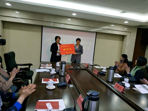 会议现场,李云主席对淄博妇联一行的到来表示热烈的欢迎和衷心的感谢,李主席主持座谈会并介绍了滨州市妇联实施巾帼脱贫行动以来所做的工作。淄博市妇联副主席卢艳丽在介绍中指出,淄博市与滨州市的友好合作关系由来已久,下一步要进一步加强联系,发挥女企业家协会的桥梁纽带作用。卢主席还介绍了淄博妇联在实施巾帼脱贫行动、妇女创业创新培训、乡村振兴巾帼行动、女企业家创业发展等方面的做法。淄博市妇联向滨州市阳信县妇联捐赠了3万元爱心款,桓台县妇联向阳信县妇联捐赠了1万元爱心款,用于帮扶阳信县建档立卡贫困妇女儿童。两市的女企业家们现场进行交流座谈,就合作项目达成了初步意向。