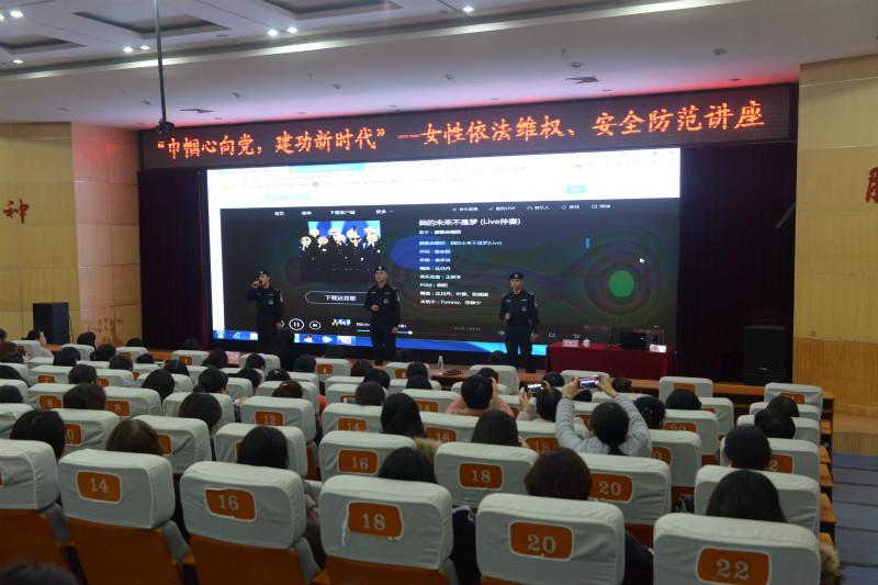 为进一步维护女职工权益,提高安全防范意识,不断提高广大女职工的安全感、幸福感、获得感,让维权和服务在源头上更有力量,按照市妇联和市总工会“巾帼心向党.建功新时代”的工作要求,淄博职业学院在全体女教职工、女学生群体中积极开展女性防范课堂讲座,聘请周村公安分局学苑派出所的李琳警官分层次进行了《成年女性安全防范》、《女大学生安全防范》讲座,全院741名女教职工、18个院系15000多名女生分期分批接受了培训。