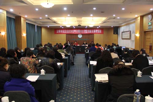 翟主席在讲话中对市女企业家协会的工作给予充分肯定,对下步工作提出希望和要求。一年来,协会不断创新活动载体,丰富服务内容,组织开展了专题讲座、主题论坛、考察交流、银企对接等一系列活动,积极搭建平台,促进女企业家交流合作创业发展,为推动企业改革创新、促进全市经济社会发展发挥了积极作用。她指出:广大女企业家要抢抓机遇,强化深度转调,强化创新驱动,强化品牌价值,在推动经济文化强市建设中实现新发展;女企业家协会要践行宗旨,努力打造精干型、活力型、服务型组织,为企业和会员发展创造条件;各级妇联组织要进一步整合资源,一如既往的支持女企协按照章程独立自主的开展工作,为女企业家协会发展提供支持。