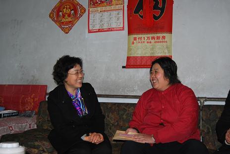 2月6日上午,市妇联主席翟乃翠、市妇儿办主任信爱霞等一行3人,到周村区城北路街道办事处沈家村走访慰问“两癌”贫困妇女李爱艳,为她送去了1万元的救助金。翟主席与李爱艳亲切交谈,详细了解其患病治疗及家庭生活情况,鼓励她勇敢面对疾病挑战,积极配合治疗,树立战胜疾病的信心,早日康复;翟主席在走访中对农村广大妇女同志的辛勤付出给以高度评价,并鼓励妇女姐妹们在农村建设中充分施展才能,为社会主义新农村建设做出新的贡献。