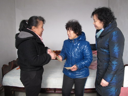 2月10日,博山区妇联组织“学裕禄精神,扬巾帼旗帜”先模人物来到源泉镇、博山镇、石马镇等山区乡镇看望慰问了贫困“两癌” (乳腺癌、宫颈癌)母亲,并为她们送去生活物资和慰问金。所到之处区妇联领导和先模人物详细询问了“两癌”贫困母亲的健康状况和家庭情况,鼓励她们树立战胜疾病和困难的信心,保持乐观的心态,积极治疗,争取早日康复。患病妇女及其家属非常感激,感谢党委政府的关心,表示要顽强与病魔作斗争,用自己的实际行动回报社会。(博山区妇联)