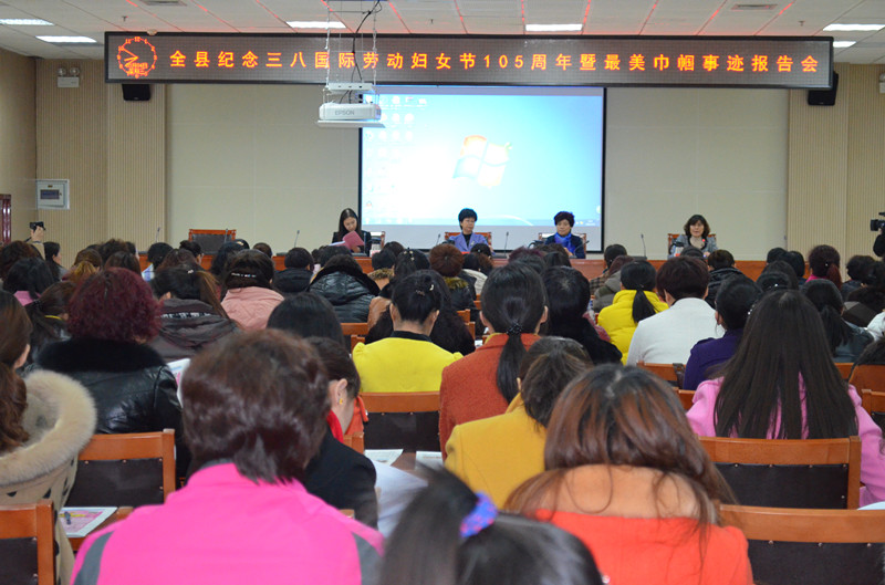3月4日,全县纪念三八国际劳动妇女节105周年暨最 美巾帼事迹报告会在县文体中心第三会议室举行。县领导赵霞、王素芳、毕玉秀出席会议。全县各级妇联干部及部分优秀妇女典型共计150余人参加会议。