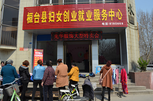 县妇联充分发挥县妇女创业就业服务中心的女性创业产品推介营销平台作用,为女企业家商会、协会会员单位提供力所能及的服务,帮助女企业家们进行产品展销,扩大品牌的宣传力度。3月24日,淄博先华服饰有限公司在县妇女创业就业服务中心进行了服饰特卖会,产品有婴儿装、童装、男女装等,款式新颖,质优价廉,受到了过往群众的喜爱和好评。