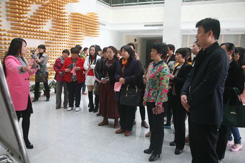 随后,考察团实地考察了菏泽市妇女手工艺品展销中心、菏泽巾帼家政、巨野书画院,油用牡丹种植基地及产业发展等情况。并详细了解了“爱家爱生活”市民终身学习系列课程―手工制作专题讲座的开展情况;在展销中心,考察团认真了解展销中心的构建模式与推广运营情况,亲身体验了“爱家爱生活”第六期手工制作课堂活动并仔细询问“手工课堂”的资金来源和运作模式等;在巨野书画院,考察团参观了书画技能培训中心、展览室、妇女之家和书画工作室,大家对女农民画师细致的画工、淳朴的艺术表现手法给予高度赞誉,对巨野县妇联如何围绕菏泽“牡丹”主导产业,更好发挥传统手工艺优势,带领农村留守妇女居家灵活就业的做法深受启发。