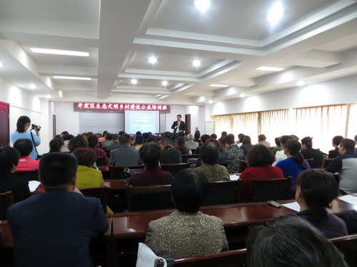 为深入推进生态文明乡村、城乡环卫一体化建设,4月21日、23日,博山区妇联邀请全市生态文明乡村建设宣传培训公益讲师团讲师刘军老师,分别在山头街道和开发区举办了2场生态文明乡村建设公益培训,刘老师为妇女们讲解了旱厕改造和营养健康等方面的知识,山头街道和开发区的村(居)妇代会主任及旱厕改造试点村的部分妇女共200余人参加了培训。