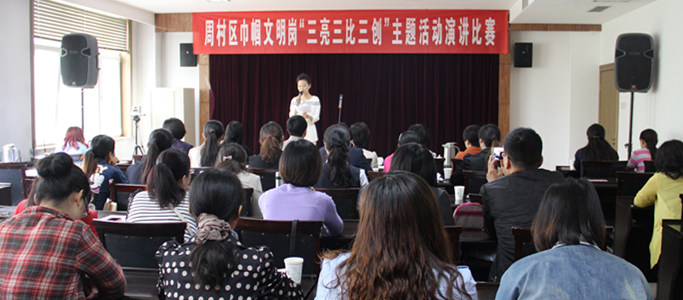 5月7日上午,周村区妇联举办了巾帼文明岗“三亮三比三创”主题活动演讲比赛。 经层层选拔的11位参赛选手,围绕“巾帼建新功•共筑中国梦”主题,亮身份、亮标准、亮承诺,比技能、比作风、比业绩,创一流、创先进、创品牌,她们用真情实感讲述了自己身边的人和事,这些事迹有血有肉,可触可及,充分展现了全区各行业优秀女性爱岗敬业、无私奉献的精神风貌。(周村区妇联)