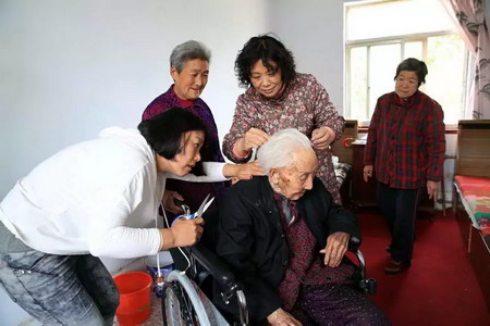 5月10日母亲节,博山女摄影家协会会员在崔利英的组织下,推着给孤寡老人王丽英买的轮椅、提着给老人们买的糕点走进了石马敬老院。在敬老院里女摄协会员们抢着给老人剪发、洗脚、缠脚、喂饭,令老人们非常感动,一直说着感谢的话。温暖老人就是温暖自己,博山女摄协的会员过了