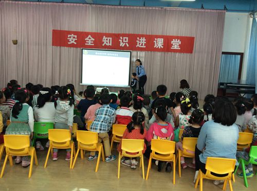 三、安全知识进课堂。5月13日邀请民警樊警官来园助教,为孩子们上了一堂形象生动的专业安全教育课。课堂上,樊警官利用精心制作的课件,直观形象地讲解了火灾危险及其危害性、消防安全标志标识、日常生活防火、逃生自救等常识,还针对性地特别讲解了幼儿日常生活中安全隐患处理方法及处理方法。
