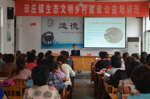 5月27日,桓台县妇联生态文明乡村建设公益培训在田庄镇举办,90余名妇女参加培训。市生态文明乡村建设宣传培训工作公益讲师团讲师、县实验中学教师金晓敏老师从旱厕改造、生态文明、家庭教育等方面为大家做了深入浅出的讲解,获得了参训妇女的一致好评。