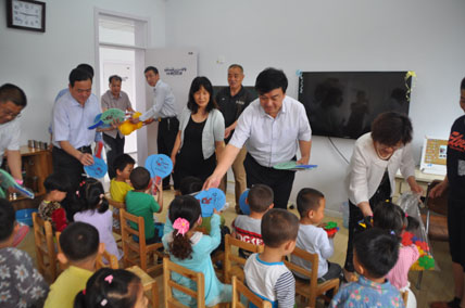 近日,博山区委领导周茂松、周庆德、李同军、杨博来到八陡镇中心幼儿园进行六一儿童节走访慰问,为孩子们送上节日的祝福和各种环保益智玩具,并向辛勤工作在教学一线的教师们致以亲切的慰问。