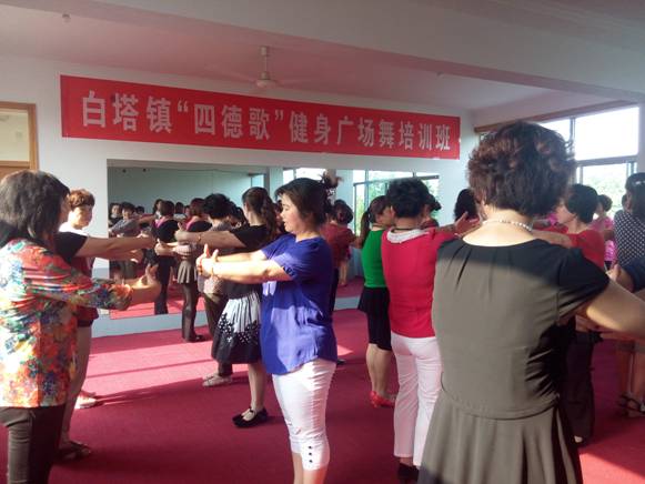 “爹娘生咱身,拉扯咱成人,汗水壮咱筋骨肉,恩情比海深……” 伴随着优美深情的歌曲,60余名健身骨干在白塔镇文体活动中心翩翩起舞。这是白塔镇妇联组织开展的《四德歌》健身广场舞培训班上精彩的一幕。