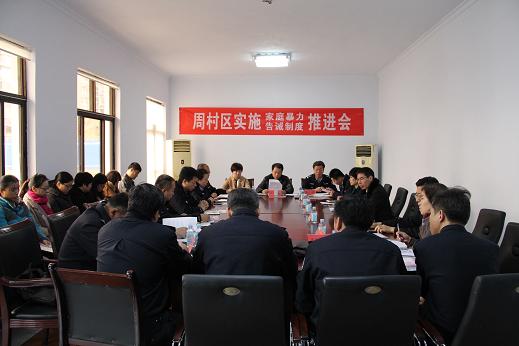 为深入贯彻落实《淄博市家庭暴力告诫制度实施办法(试行)》,及时总结反家暴规范化操作试点单位经验,在全区公安系统内全面推进实施家庭暴力告诫告知制度,以公安告诫震慑家庭暴力行为,推进“平安家庭”、“平安周村”建设,11月18日上午9:00点,周村区妇联与周村公安分局联合,在永安派出所二楼会议室联合召开了周村区实施“家庭暴力告诫制度”推进会。区综治办、区妇联主要负责人,区维护妇女儿童及残疾人合法权益联席会议成员单位分管负责人,各镇、街道妇联主席、派出所所长共30余人参加了会议。