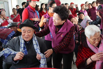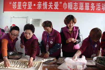此次巾帼志愿服务活动突出“邻里守望•姐妹相助”主题,现场开展了“衣暖情深”爱心棉衣募集发放,“爱绿护绿、文明家园”环保公益传递,黄手环发放、生命急救知识传播等6项主题志愿服务活动。市巾帼志愿者协会、齐心淄博公益联盟、齐善助学服务中心、绿丝带发展中心、幸福晚晴老年人照料中心等20余支巾帼志愿者队伍、百余名巾帼志愿者参与活动。随后,邢善萍一行到胜利社区老年公寓看望老人,为老人们发放暖心围巾、陪同老人观看节目、聊天,并与志愿者一起包水饺、共进午餐。