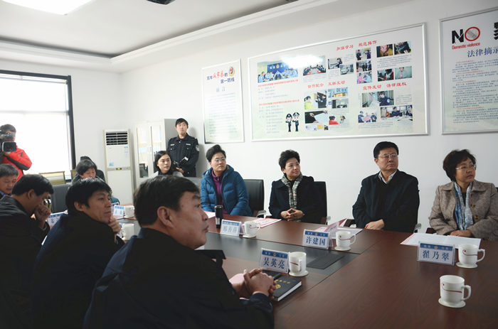 在市级反家暴规范化操作试点单位孙娄派出所,邢善萍一行听取了派出所关于受理、处置家庭暴力的情况汇报,对该所落实家庭暴力告诫制度,从源头入手规范家庭暴力处置流程的做法给予充分肯定。邢善萍强调,要进一步加强与区妇联等部门的协作配合,形成报警投诉、联合调解、法律与心理援助的反家暴工作格局。