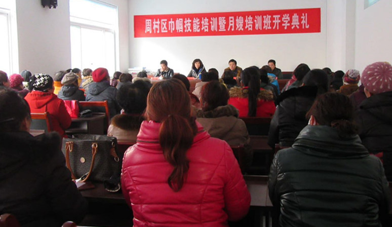 随着二胎政策的全面实施,广大家庭对月嫂及家政服务人员的需求日趋紧张。针对目前基层妇女对月嫂培训的强烈需求,为引领妇女脱贫致富,提升就业能力,周村区妇联联合周村区人社局、王村镇于1月13日在周村区王村镇大史村举办2016年周村区巾帼技能培训暨月嫂培训班。周村区妇联副主席、区妇儿办主任王欣荣,区人社局职业技能鉴定中心主任李欣,王村镇党委委员张兴、区发凯科技职业培训学校校长苏金海出席开班仪式。