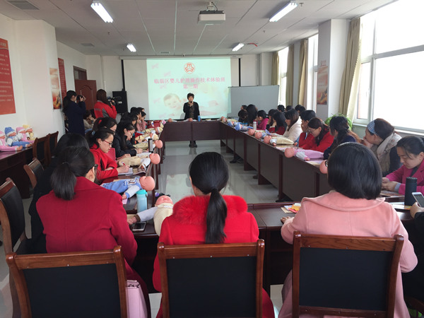 3月4日上午,为了庆祝第106个国际妇女节,帮助全区广大机关女干部树立科学的育儿观念,丰富育儿知识,进一步提升早教指导能力,促进婴幼儿健康快乐地成长,临淄区妇联在稷下街道淄江社区特举办婴儿护理操作技术体验班。