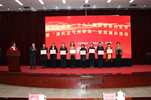 活动分两个阶段,第一阶段表彰了区三八红旗集体、清风正气传家远家风征集活动优秀组织奖、农村妇女两癌检查先进单位、区优秀广场舞队伍、区三八红旗手和区最美家庭,充分肯定了“妇女半边天”的力量。第二阶段是“清风正气传家远”家风展示活动,活动以讲家风故事、诵读家书、演出情景剧、唱主题曲等形式集中展示家庭助廉行动成果。通过活动开展,引导党员干部回望家族历史,重寻家风精髓,梳理支撑自己人生追求的思想脉络,不断提升精神境界;引导党员干部重拾家规家训,珍视习惯的力量,夯实规矩意识的基础;引导党员干部举家参与,自觉营造美好温馨、积极向上的家庭氛围,筑起反腐倡廉的家庭防线。(王菊)