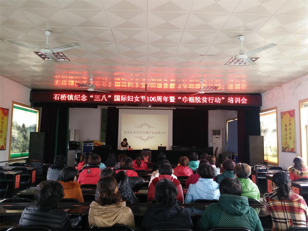为了切实做好精准扶贫工作,帮助农村贫困妇女掌握新技能,开辟新的就业渠道,激发贫困妇女的就业创业热情,3月8日上午,石桥镇妇联举办了“巾帼脱贫”家政培训班,50多名贫困妇女参加了培训。