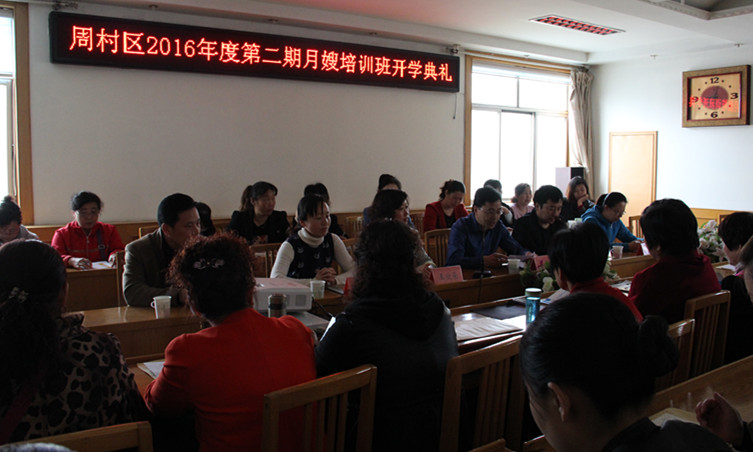 4月12日周村区2016年度第二期月嫂培训班在周村区人民医院开班了。针对目前广大家庭对月嫂及家政服务人员的需求日趋强烈,为引领妇女脱贫致富,提升就业能力,区妇联积极响应省市妇联关于“大众创业万众创新――巾帼在行动”的号召,联合周村区人社局、周村区人民医院共同举办周村区2016年度第二期月嫂培训班。周村区妇联副主席、区妇儿办主任王欣荣,区人民医院院长李传贵,区人社局职业技能鉴定中心主任李欣,区人民医院工会主席路颖颖,区发凯科技职业培训学校校长苏金海出席开班仪式。