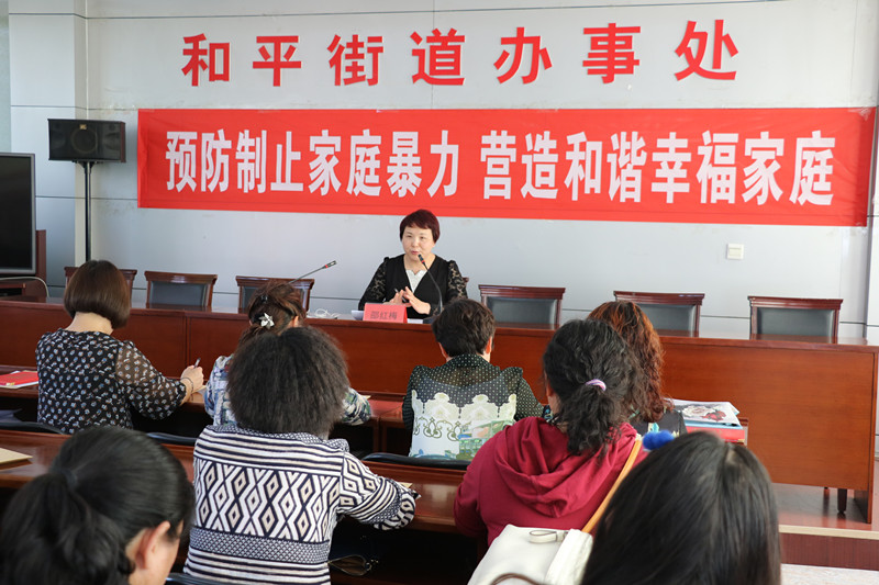 近日,和平办事处邀请兼职副主席邵红梅律师给大家带来一堂“预防制止家庭暴力 营造和谐幸福家庭”的反家暴知识讲座。办事处、社区等50余名基层妇女干部参加了本次讲座。讲座中,邵红梅律师根据自身多年妇女维权经验,为大家讲述了许多生动的法律案例,使在座妇女深入浅出地了解婚姻家庭生活中会遇到的各种家庭暴力问题,引导广大妇女学会运用法律武器,保护自己的合法权益。