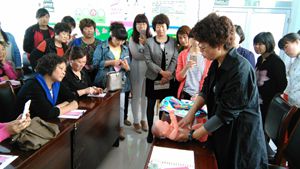 在沂源县鲁阳社区妇女儿童家园培训室里,人们围着沂源爱贝佳月嫂服务公司经理隽华问个不停。