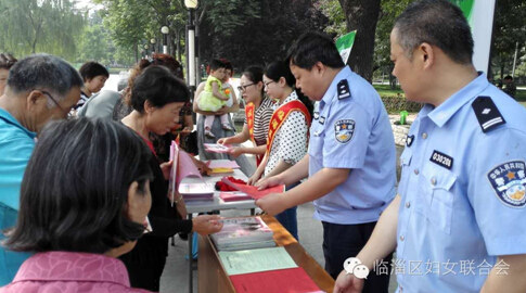 在发放宣传资料的同时,区妇联的巾帼志愿者们和区公安分局的工作人员还为过往群众耐心讲解什么是家暴、遇到家暴后的处理措施、什么是拐卖妇女儿童罪、儿童防拐招数和技巧等常识,受到了群众的欢迎。