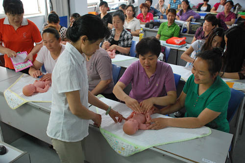 聘请专家为学员们授课,培训内容涵盖孕产妇均衡营养、产后健康与护理、新生儿护理等专业知识。既有理论性的专业授课,还有实践性的操作指导,切实保证培训的效果。