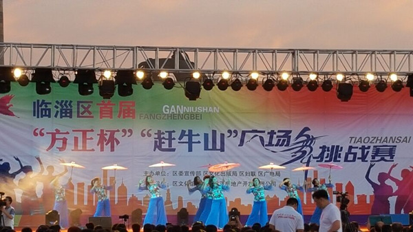 6月24日晚上,由临淄区委宣传部、区妇联、区文化出版局、区广电局联合主办的首届“赶牛山”广场舞挑战赛在临淄人民广场启动,广场舞爱好者纷纷登台献艺,为市民呈现了一场热情豪放又富有临淄文化特色的演出。