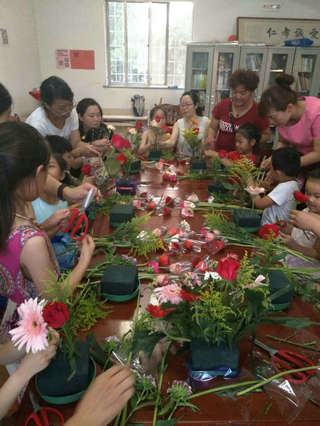 7月1日,在中国共产党成立95周年来临之即,般阳路妇联组织辖区内的妇女儿童举办了“做个花篮献给党”的插花活动,孩子和妈妈一起动手,把我们的浓浓的情,深深的爱都溶入到一个小小的花篮里,一个小小的花篮代表我们广大妇女儿童,向伟大的党献上我们诚挚的祝福,祝福我们的国家繁荣昌盛,祝福我们的祖国日益强大,祝福我们的人民幸福安康。(刘丽珊)